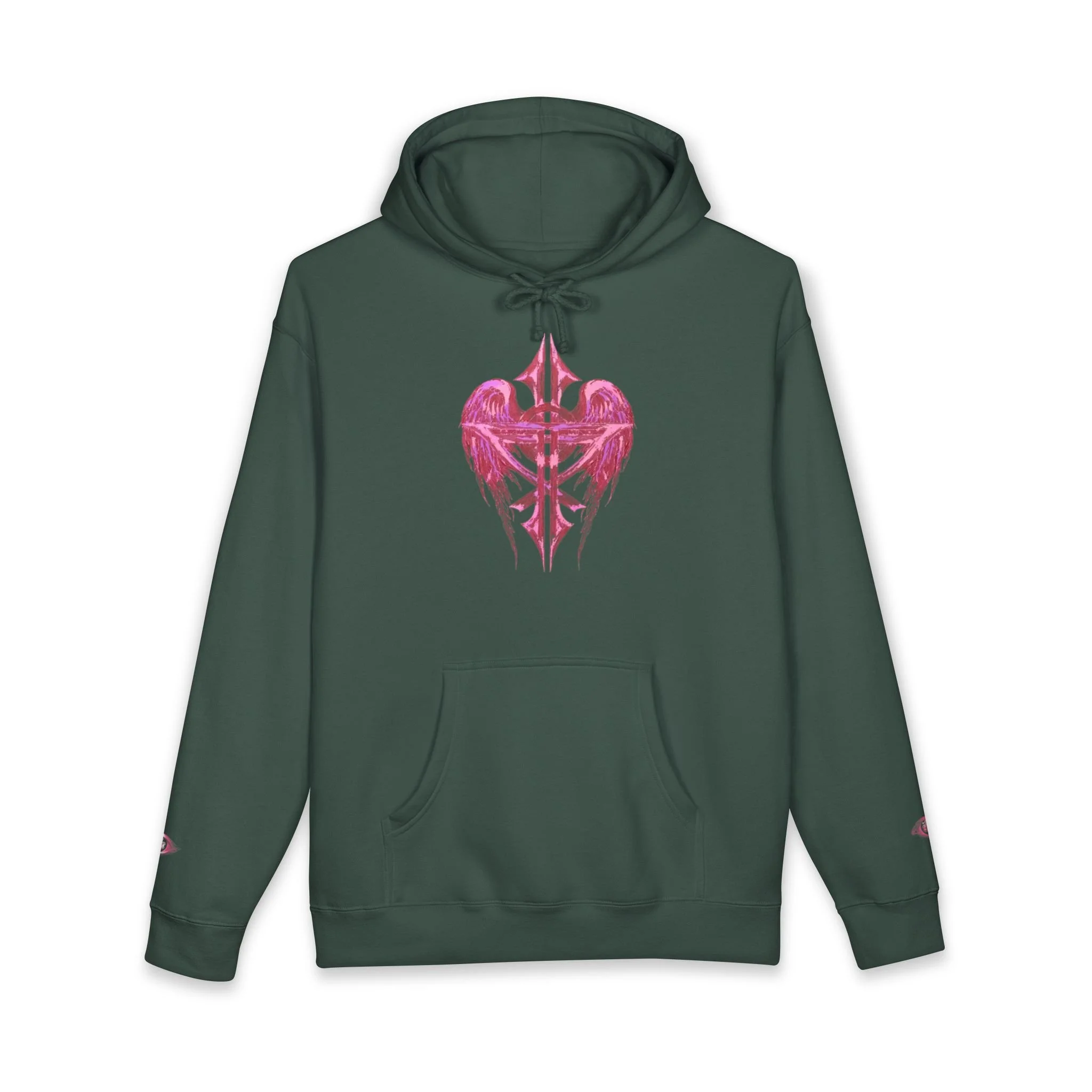 The eyes on the back symbolize the Angelic & Spiritual realm of Heaven always watching over you. The Front Is a cross shaped heart that has wings.