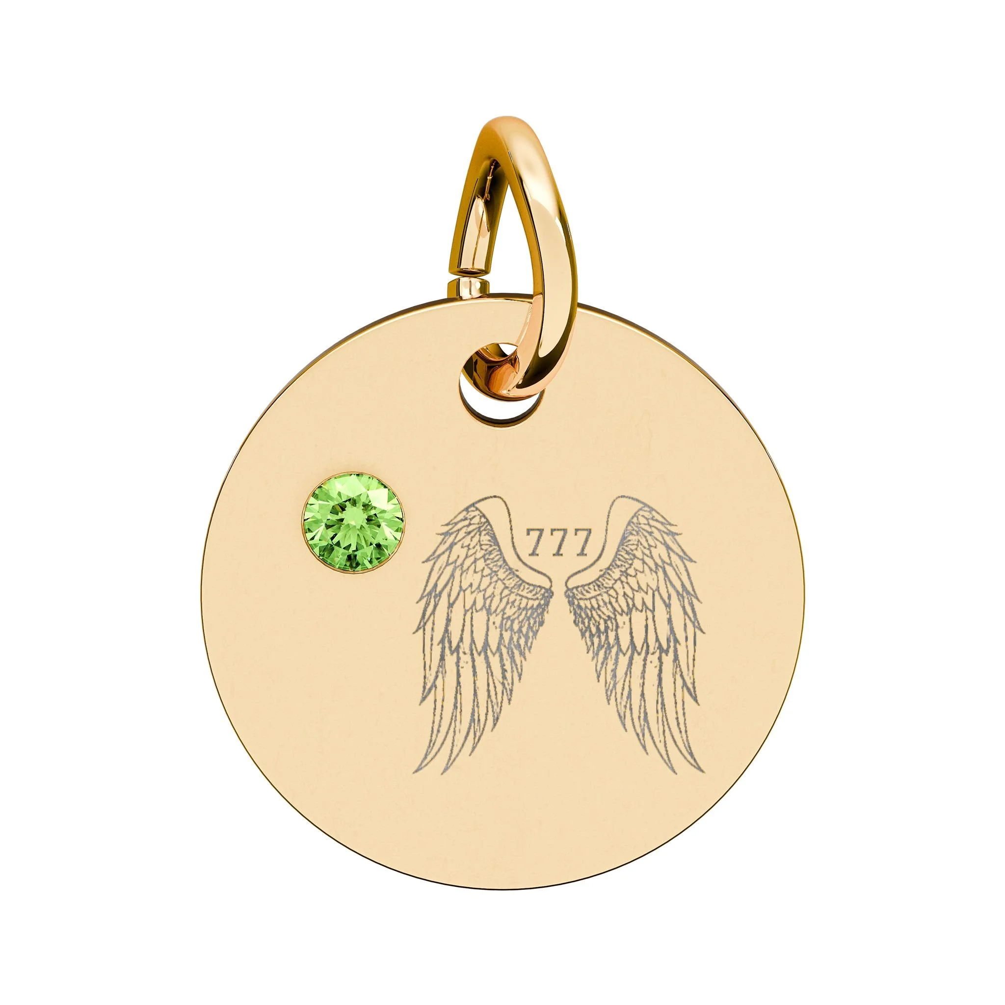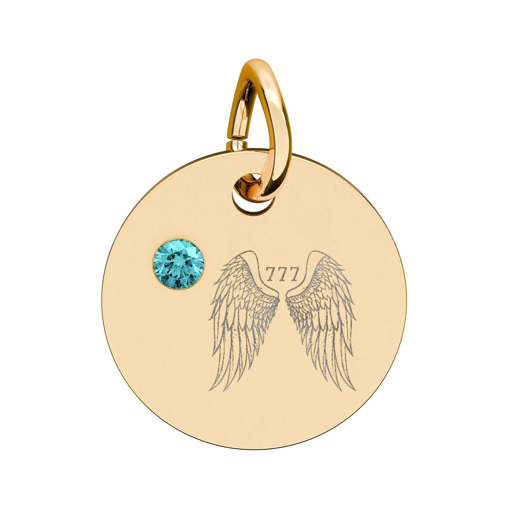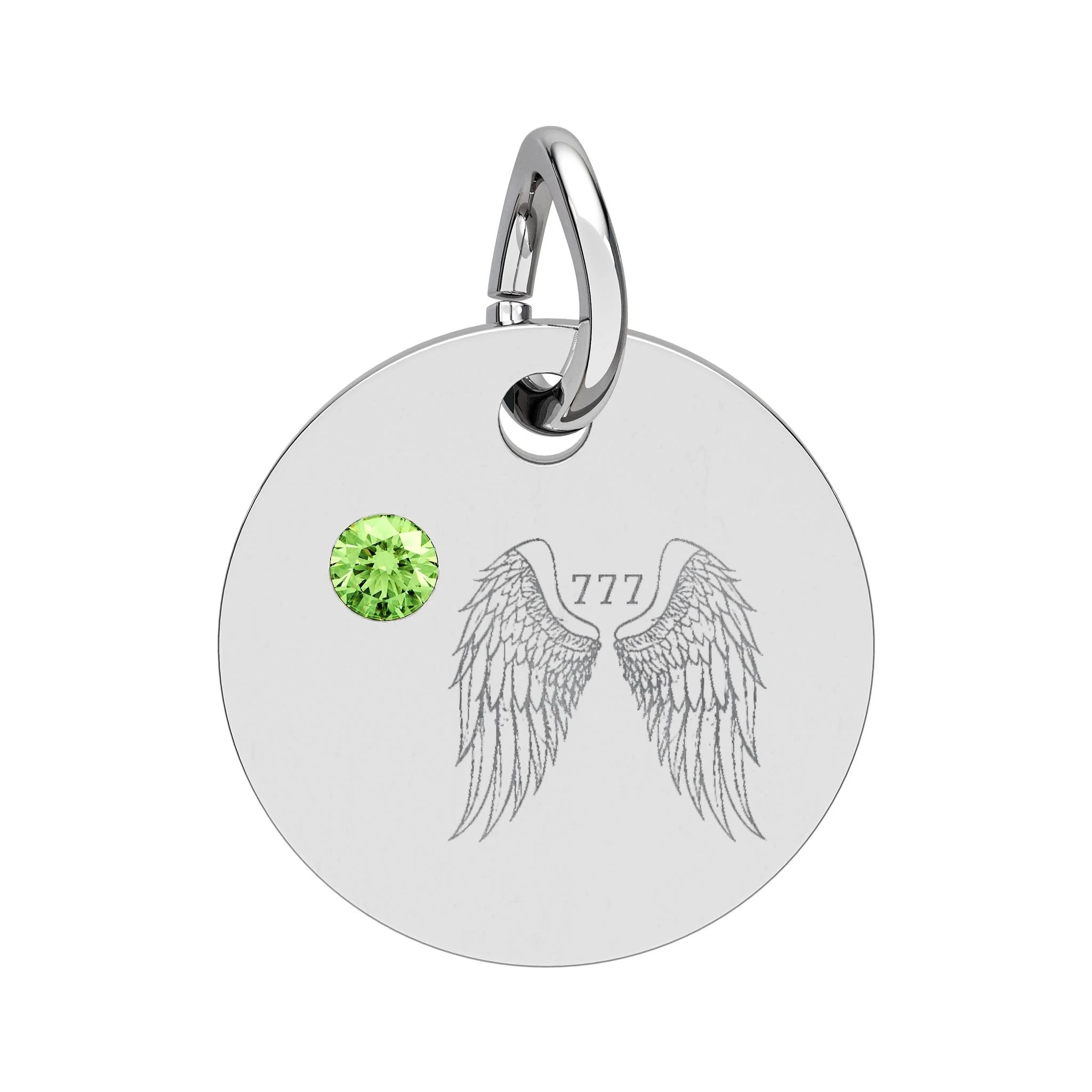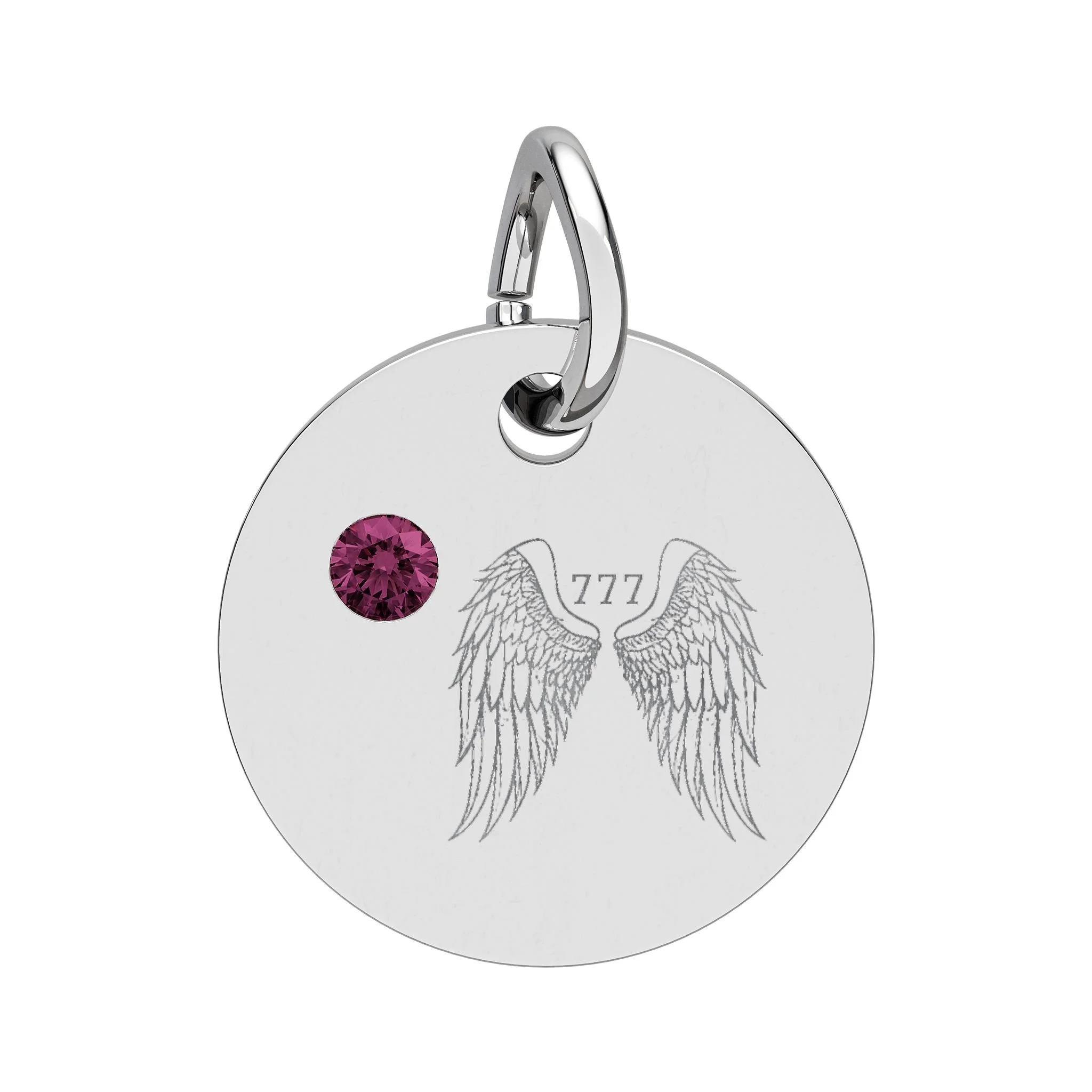 A small, engraved birthstone circle charm that carries quiet meaning.
