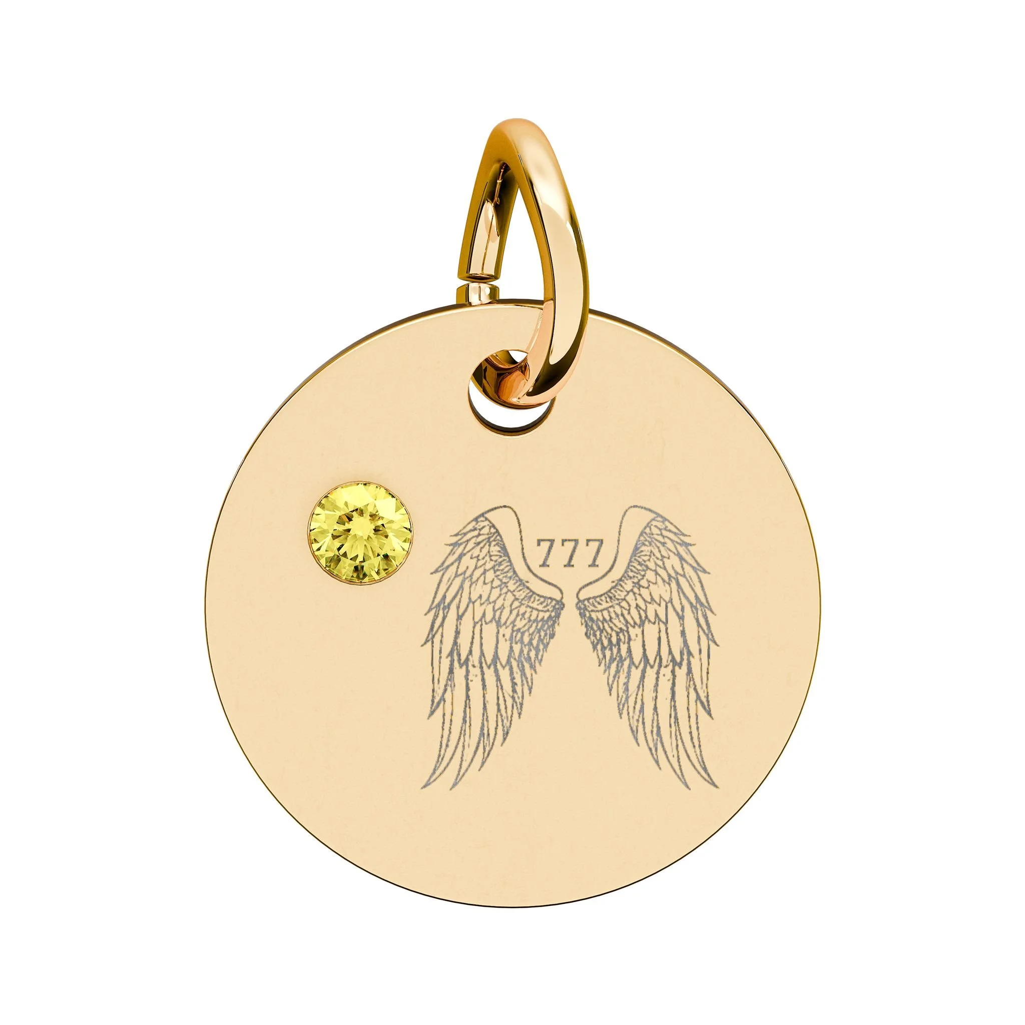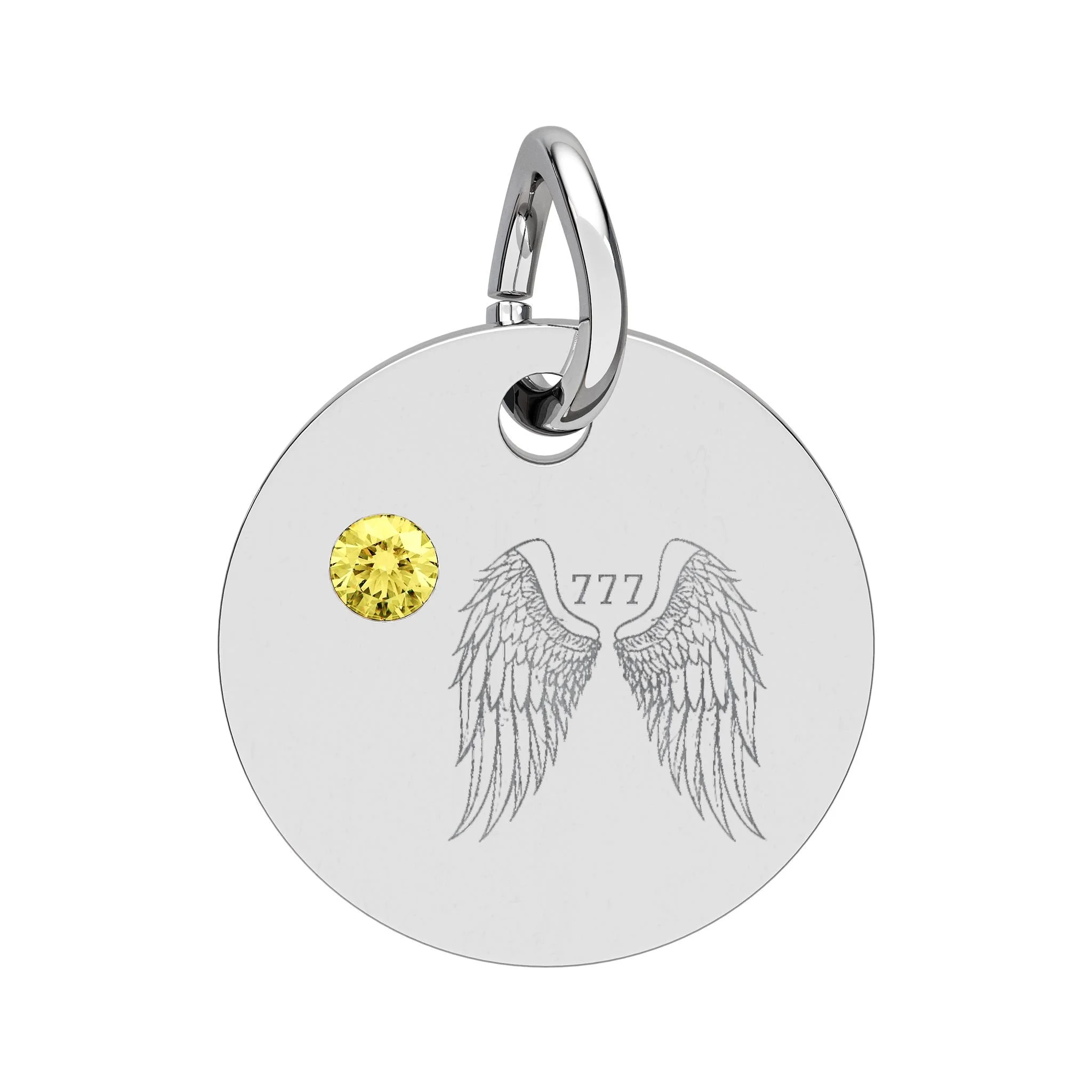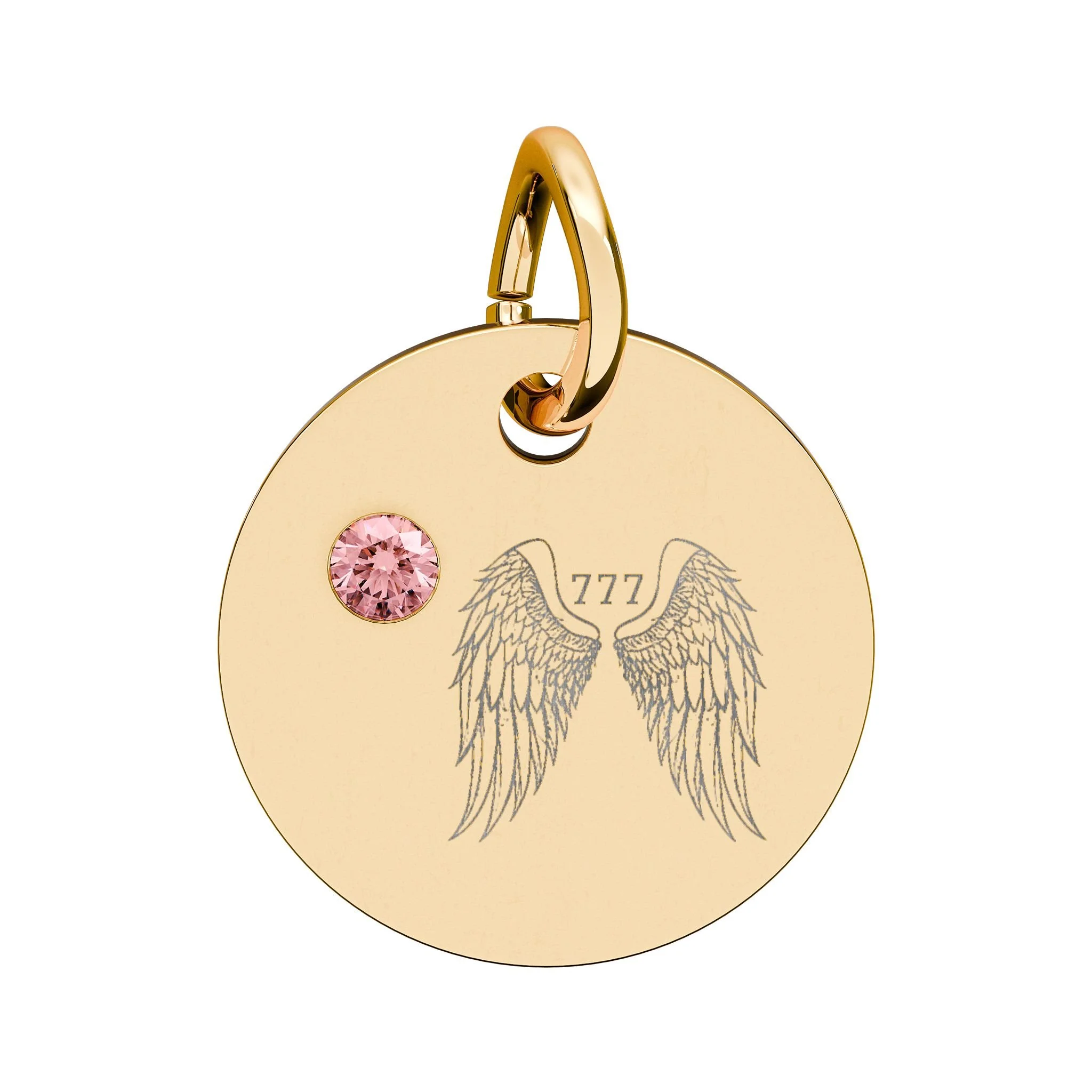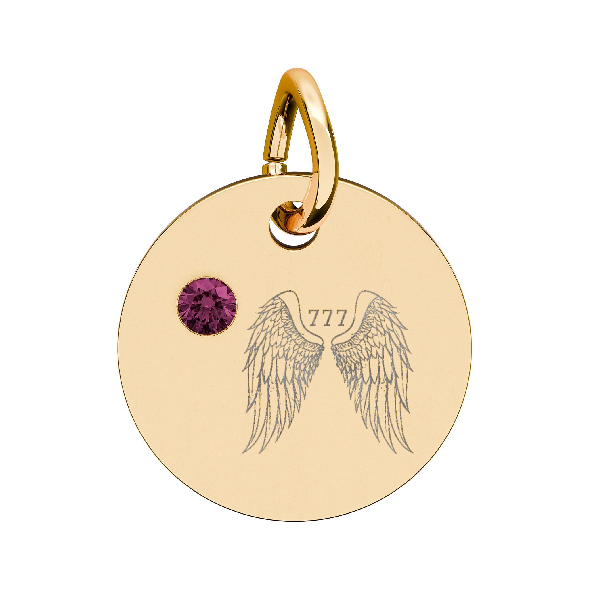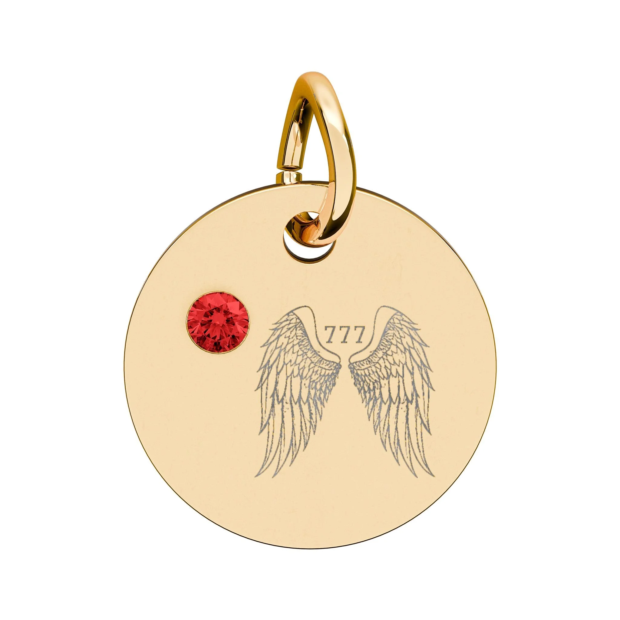 A small, engraved birthstone circle charm that carries quiet meaning.