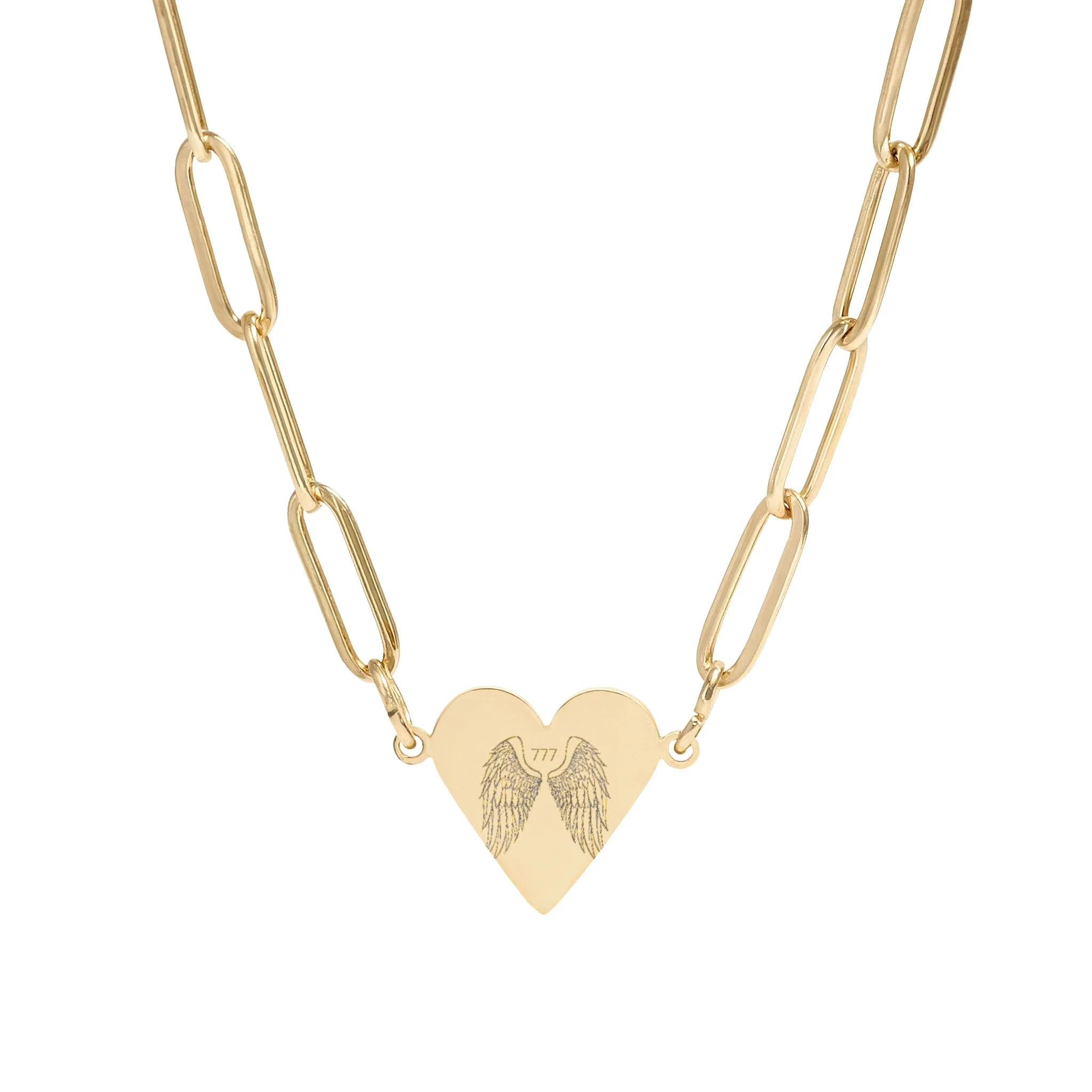 A delicate paperclip-link necklace with a polished heart pendant engraved for a subtle, personal touch.