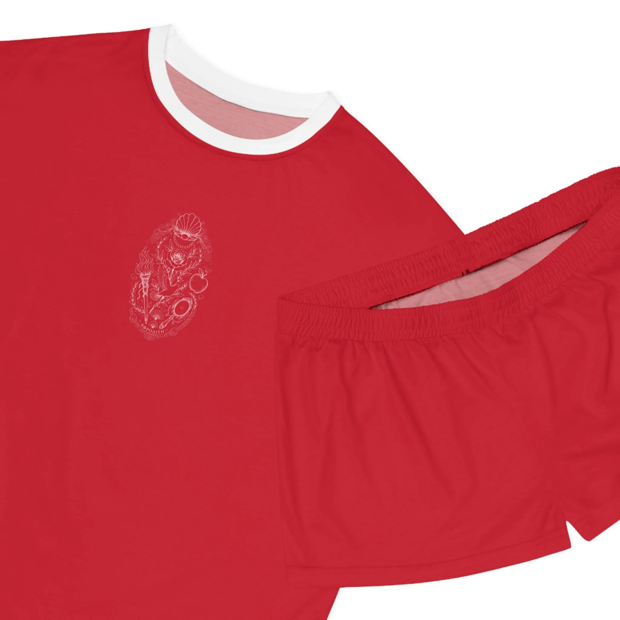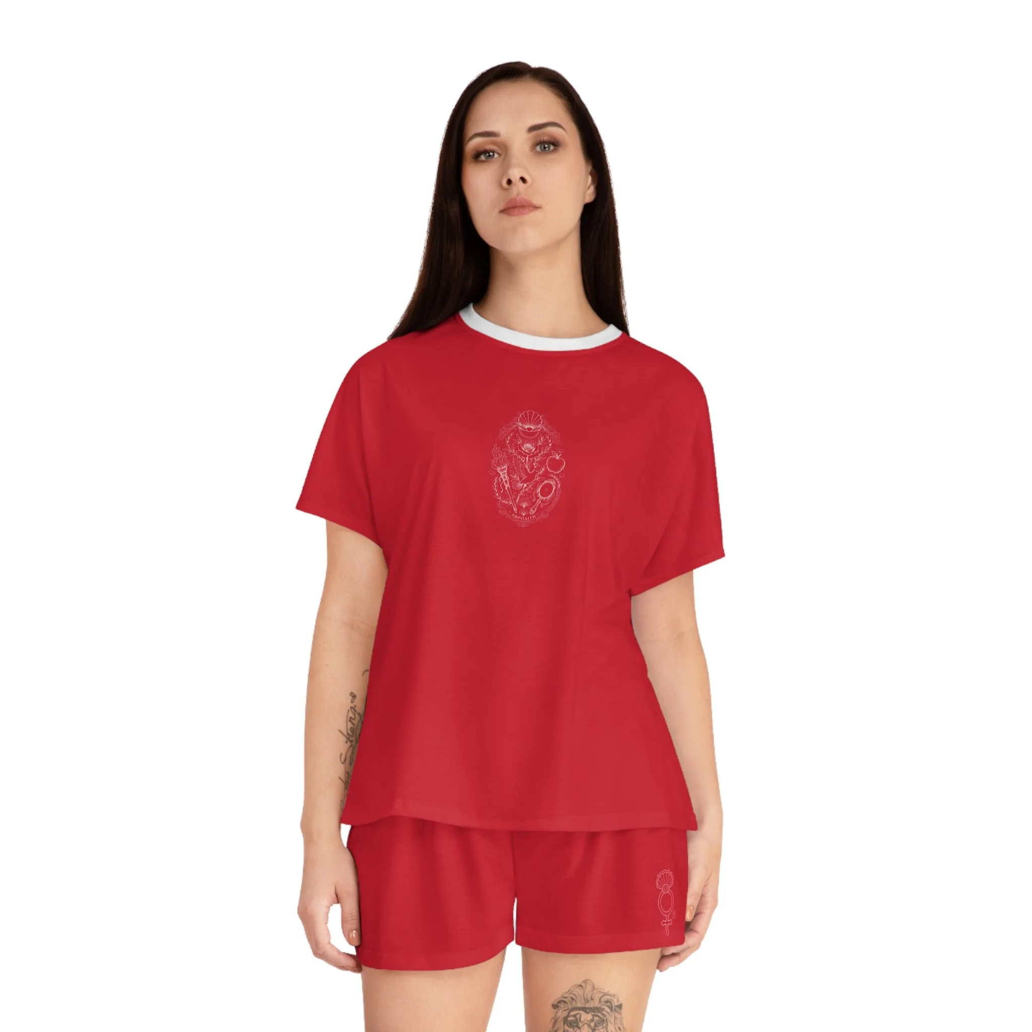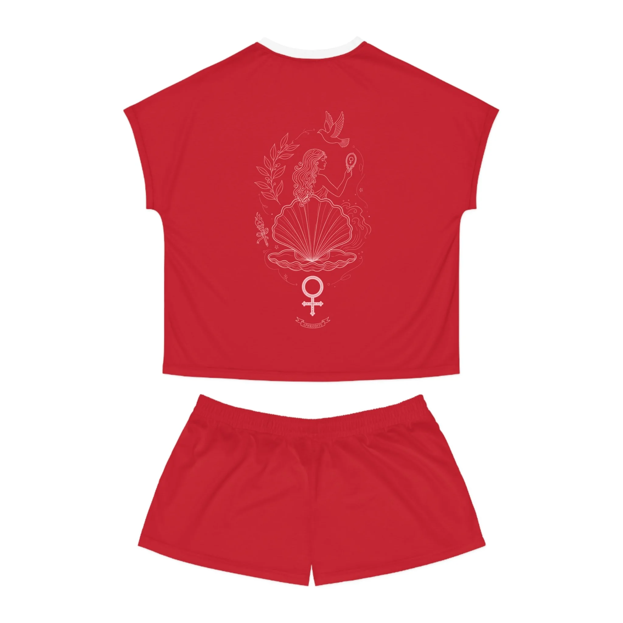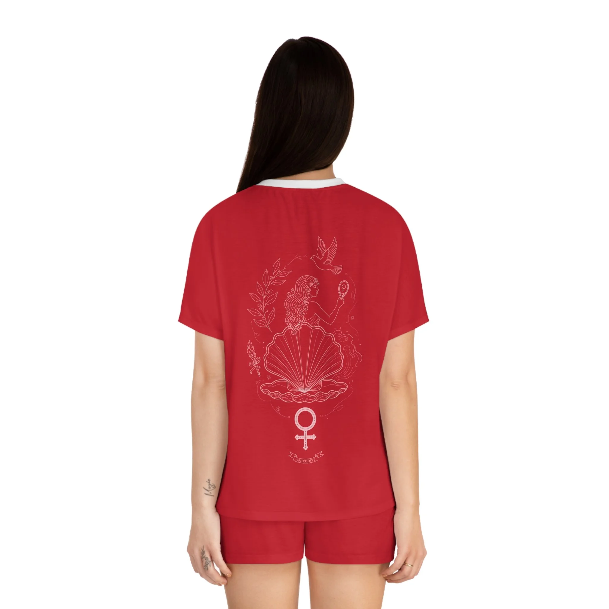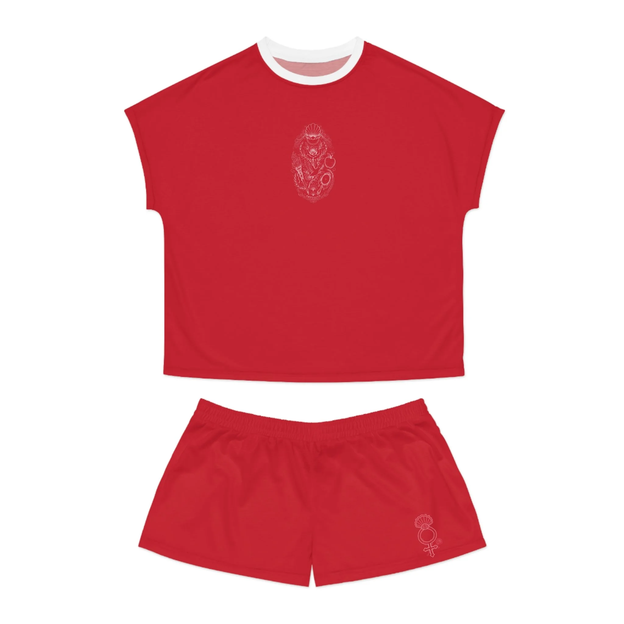 These women's short pajama two-piece set come with a relaxed fit, a ribbed collar and feature no sleeve seams.